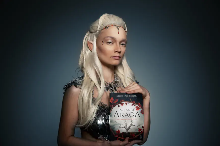 Feh: Die Blume der Nacht. Sie war wunderschön, schöner als jede Blume. Die Elfe trug hautenge lederne Kleidung von dunkler Farbe, die sich an ihren Körper schmiegte wie eine zweite Haut. Dass sie ein weibliches Wesen war, zeigte sie überdeutlich, mehr als es gesittete Menschinnen taten, von elfischen Frauen nicht zu reden. Genauso gut hätte sie nackt vor ihm stehen können. Lange blonde Haare fielen bis zur Hüfte herunter und zeichneten sich so hell vom dunklen Leder ab, wie Schnee auf schwarzer Kohle. Durch den Regen kräuselten sich einige Strähnen zu leichten Locken. Ihr Gesicht war so schön und ausdrucksstark, dass Spex ein wohliger Schauer den Rücken hinunterlief. Ihre Augenbraunen waren in einem Bogen über wunderschönen dunkelgrünen Augen geschwungen, die unter langen Lidern mandelförmig hervorschauten. Ihre Katzenaugen trafen seine und er fühlte sich noch vollständiger entwaffnet als es im Kampf je geschehen würde.