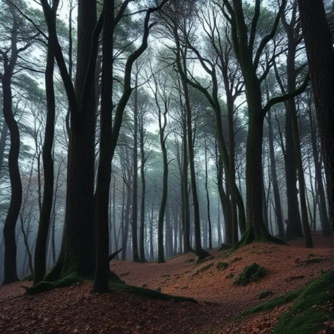 düstere Wächter standen die Bäume um ihn herum. Er